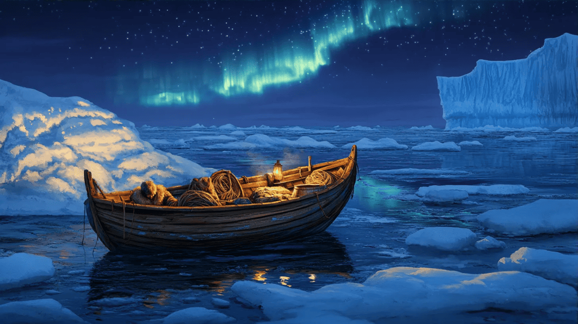 - Затишье: Суббуря стихает, оставляя зарево на небе. В мифе это победа героя, прорвавшегося сквозь хаос, как полярный землепроходец, покоряющий север.