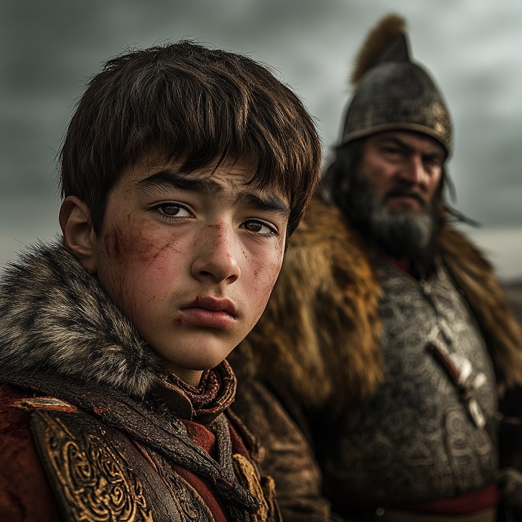 Создано на основе запроса: a young Central Asian nobleman with a sorrowful expression, soft lighting on his face, in the background an older Mongol warlord in fur armor seen from behind, overcast skies, emotional and dramatic atmosphere, cinematic portrait, 16:9 --- Автоперевод: Молодой Центральная Азиатская дворянин с печальным выражением, мягким освещением на лице, на заднем плане старый монгол -военачальник в меховой броне, вид сзади, пасмурное небо, эмоциональная и драматическая атмосфера, кинематографический портрет, 16: 9 Интересно выглядит? 🤔 https://dzen.ru/id/65c0c65c86e4f837c27b24d7 #ИИ #AI #нейросеть #midjourney #art