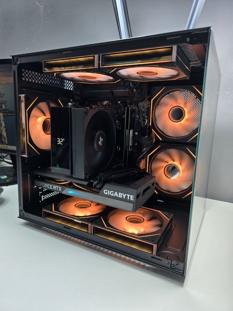 Корпус: Invader Q3S с RGB-подсветкой и 7 вентиляторами Prism 5 Pro (4 реверсных + 3 обычных) — красиво и прохладно внутри.