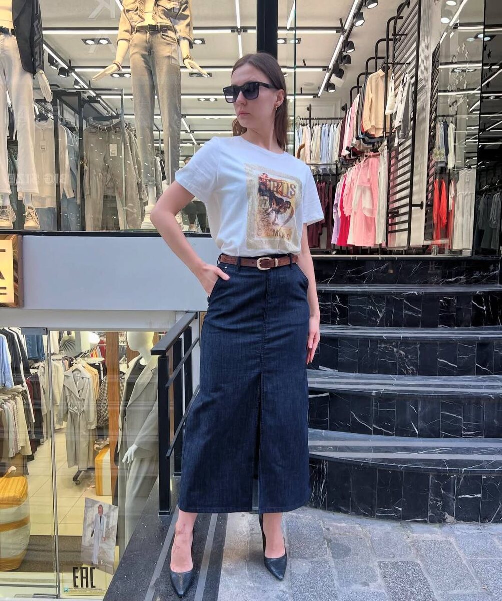 Юбка из тончайшего денима в длине миди с высоким разрезом спереди !
