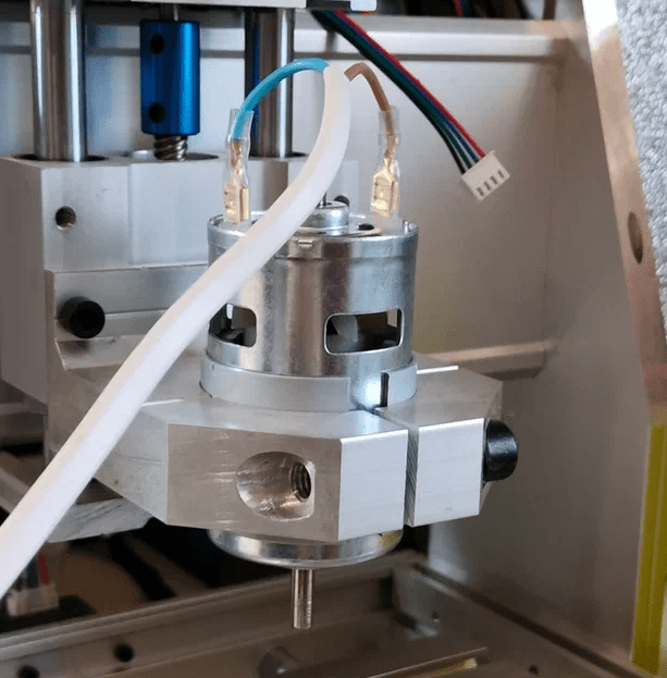 В качестве тестовой нагрузки я использовал коллекторный электродвигатель, установленный на 3D-ЧПУ станочке. Станок все равно пока стоит без дела. Снимать же приводы с теплицы очень не хочется – разъемов у приводов нет, придется обрезать провода а потом вновь паять, что не очень хочется.