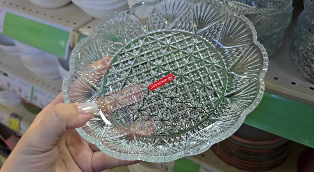 Ещё одна интересная новинка из Фикс Прайса. Блюдо на ножке Pasabahce. 25 см. в диаметре, сделано из прочного стекла с рельефным узором.
