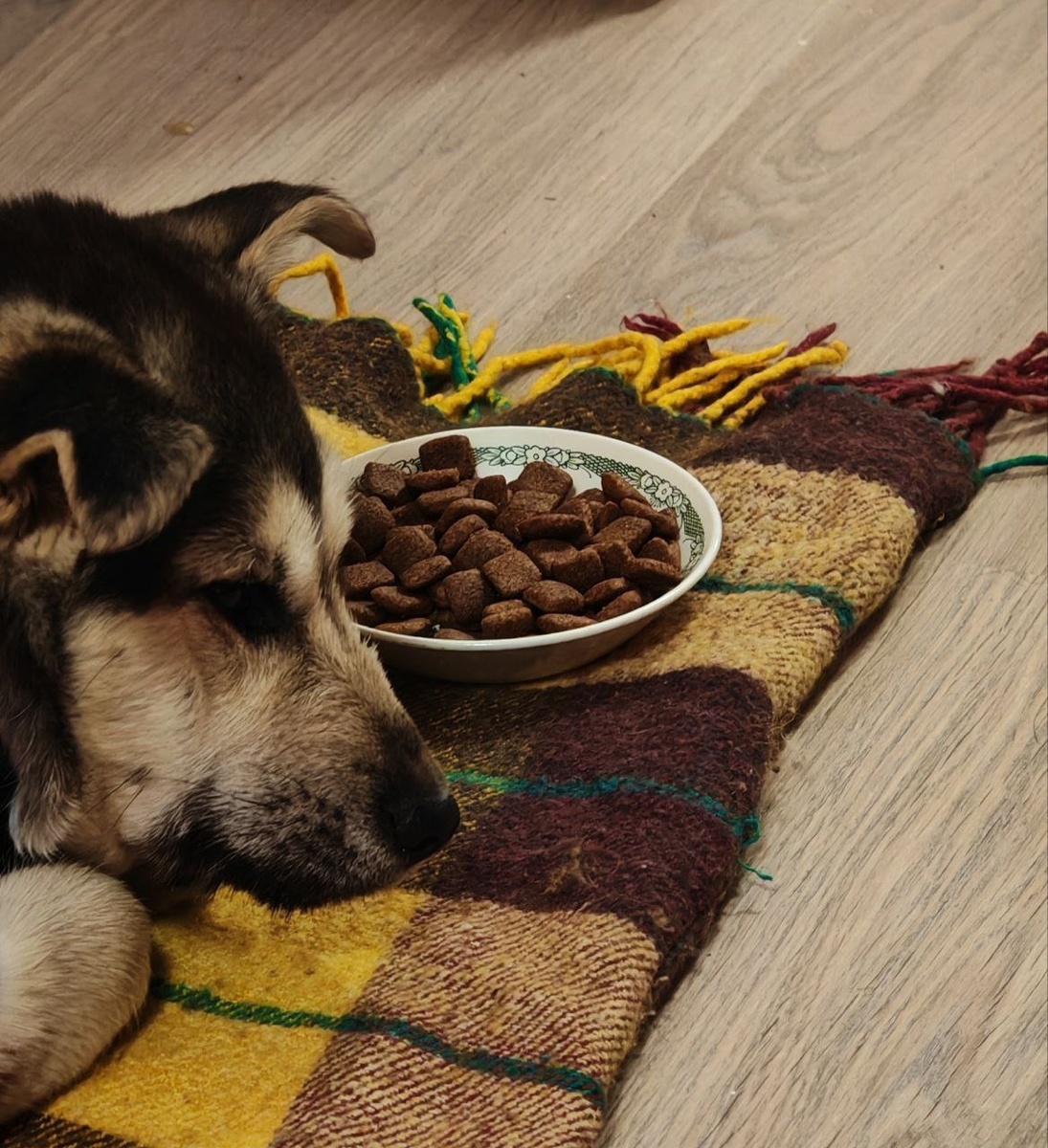 Ох, погода нас не радует... Поэтому мы перебрались в дом. Есть такая возможность, не жалко, заодно и посмотреть, как она будет себя вести в помещении. Черри прекрасно себя ведёт и ещё чётко выполняет команду МЕСТО☝🏻🤷🏻 на уютном пледе. Ночью тихонечко на ципочках сходила на пелёнку (постелили на всякий случай). Переждем эту непогоду в тепле, как не крути, она ещё ребёнок. Вернёмся в вольер, как потеплеет 😉