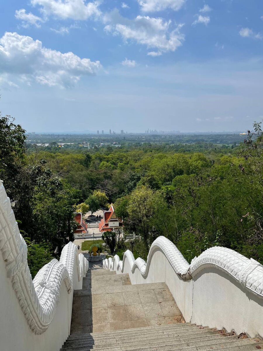 Всем привет! Сегодня выбрались до интересного храма в Паттайе. Там большая территория по которой можно погулять. На вершине холма стоит небольшое храмовое сооружение к которому ведет лестница из 320 ступеней(не считал:)) С вершины открывается прекрасный вид на Паттайю.