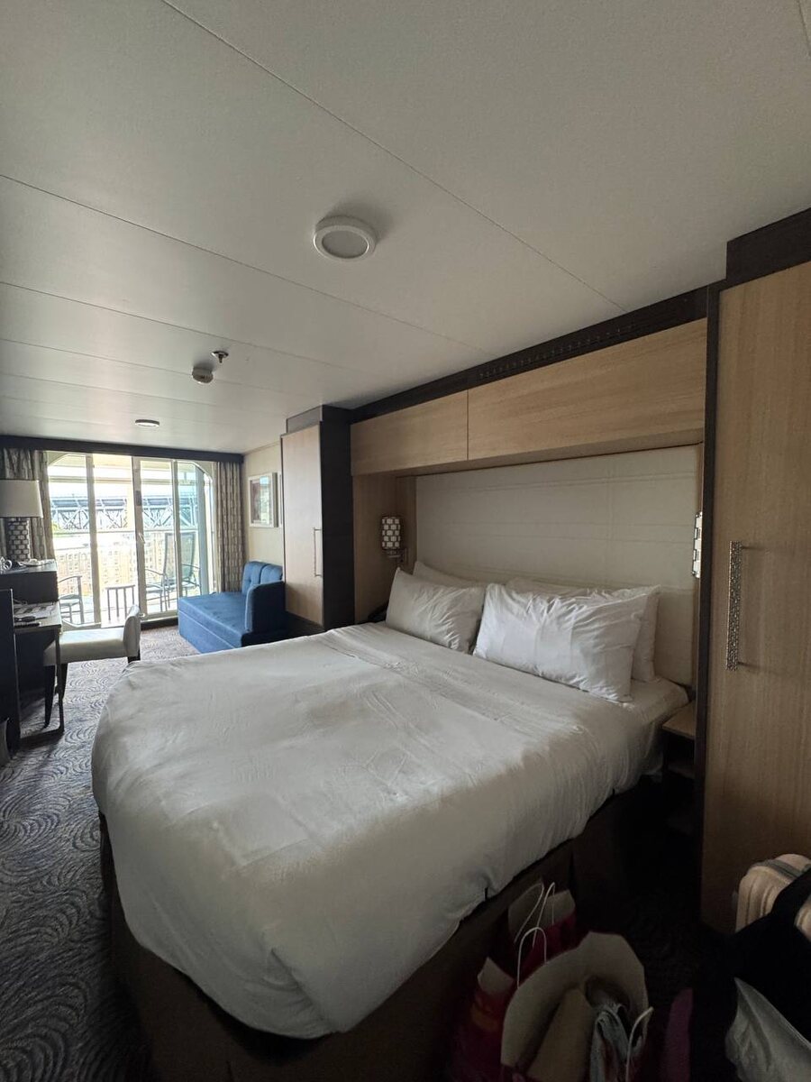 Наш дом на 10 ночей: обзор каюты Уже во время круиза поняли, что дольше ночей подряд мы не ночевали ни в одном месте! Кроме дома, конечно. 😂 ℹ️ Итак, на борту лайнера обычно есть несколько основных категорий кают: ➖Внутренние ➖С окном ➖С балконом ➖Сьюты Но просто на определении нужной категории выбор каюты не заканчивается. Обычно самый недорогой вариант – это выбрать гарантированную каюту определенной категории. В этом случае точное расположение и номер будут назначены позднее. Кстати, внутренние каюты на этом корабле хоть и без окон, но оснащены экраном с трансляцией вида за бортом, что должно создавать эффект настоящего окна. У нас же, и без того подверженных морской болезни, была каюта с балконом. А на момент покупки цена на нее была даже ниже, чем на каюту с окном. *️⃣На фото и видео наша каюта, расположенная на 13 палубе. Площадь около 19 м² + балкон 5 м². Места для двоих достаточно, но для 3 человек будет уже тесновато. Чисто, комфортно, только окна на кораблях, видимо, оч