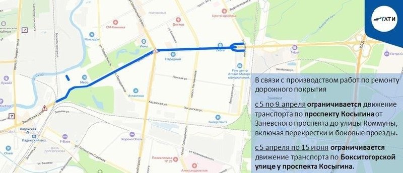 ❗️ГАТИ Санкт-Петербурга информирует о планируемых ограничениях дорожного движения с 5 апреля
