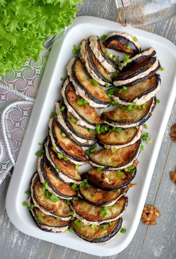 Хрустящие баклажаны с нежной сырной начинкой и ароматом вяленых томатов – это идеальная закуска для любого стола! 😍 🔹 Ингредиенты: 🍆 Баклажан – 2 шт. 🧀 Сыр творожный – 250 г 🌰 Орехи грецкие – 60 г 🍅 Томаты вяленые – 100 г 🧄 Чеснок – 2 зубчика 🥚 Яйцо куриное – 1 шт. 🛢 Масло растительное – 3-4 ст. л. (для жарки) 🔹 Приготовление: 1️⃣ Баклажаны помыть и нарезать кружками (толщиной 6-7 мм). 2️⃣ Замочить их в подсоленной воде на 20 минут, затем обсушить. 3️⃣ Взбить яйцо, обмакнуть в него баклажаны и обжарить до золотистого цвета с обеих сторон. 4️⃣ Выложить на бумажные салфетки, чтобы убрать лишний жир. 5️⃣ Приготовить начинку: измельчить орехи в блендере, добавить творожный сыр, порезанные вяленые томаты, выдавленный чеснок и, по желанию, укроп. 6️⃣ Намазать начинку на обжаренные баклажаны, сложить дольками. 🥂 Подавайте закуску теплой или охлажденной – она восхитительна в любом виде! Приятного аппетита! 😋✨