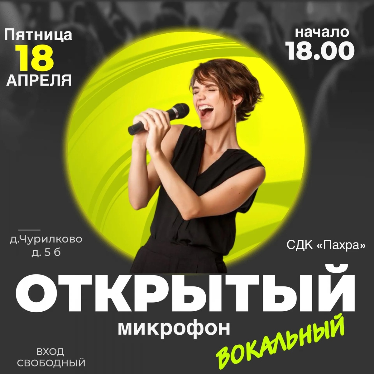 ✨ 📣«Открытый вокальный микрофон»📣 Приглашаем принять участие всех, кто обожает петь, проводить время среди творческих людей, хочет быть услышанным и познакомиться с единомышленниками. Вечер любителей караоке 🎤 Для участия вам необходимо прислать заявку в личные сообщения, указав свою ФИО, возраст и контактный телефон. Поможем с репертуаром и репетициями👌. Любой желающий может посетить мероприятие и поддержать исполнителей, насладиться их талантом и творчеством. 📆 18.04.2025🕒18:00 🏢 Сельский дом культуры (СДК) «Пахра» 📍 г.о.Домодедово, дер.Чурилково, ул.Чурилково, д.5Б 💰 Вход свободный❗️ ✅ Мероприятия Домодедово https://dzen.ru/id/66f10385cc4c5a16f7b5fb02 http://vk.com/domodedovo_events http://dzen.ru/domodedovo_events