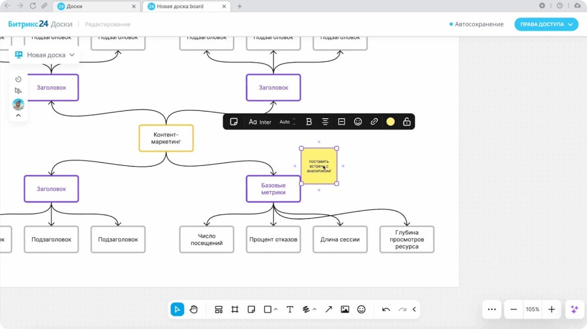 Тем временем «Битрикс24» запустил сервис онлайн-досок для командной работы