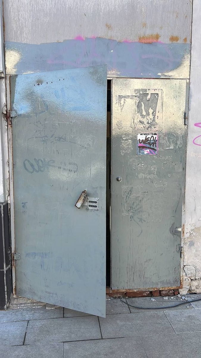 Жильцы дома на ул. Советской неоднократно обращались в управляющую компанию «Постникова», чтобы привели в порядок входную дверь и вставили замок. Они её покрасили. Как вам результат? Осталось навесной замок повесить 😂