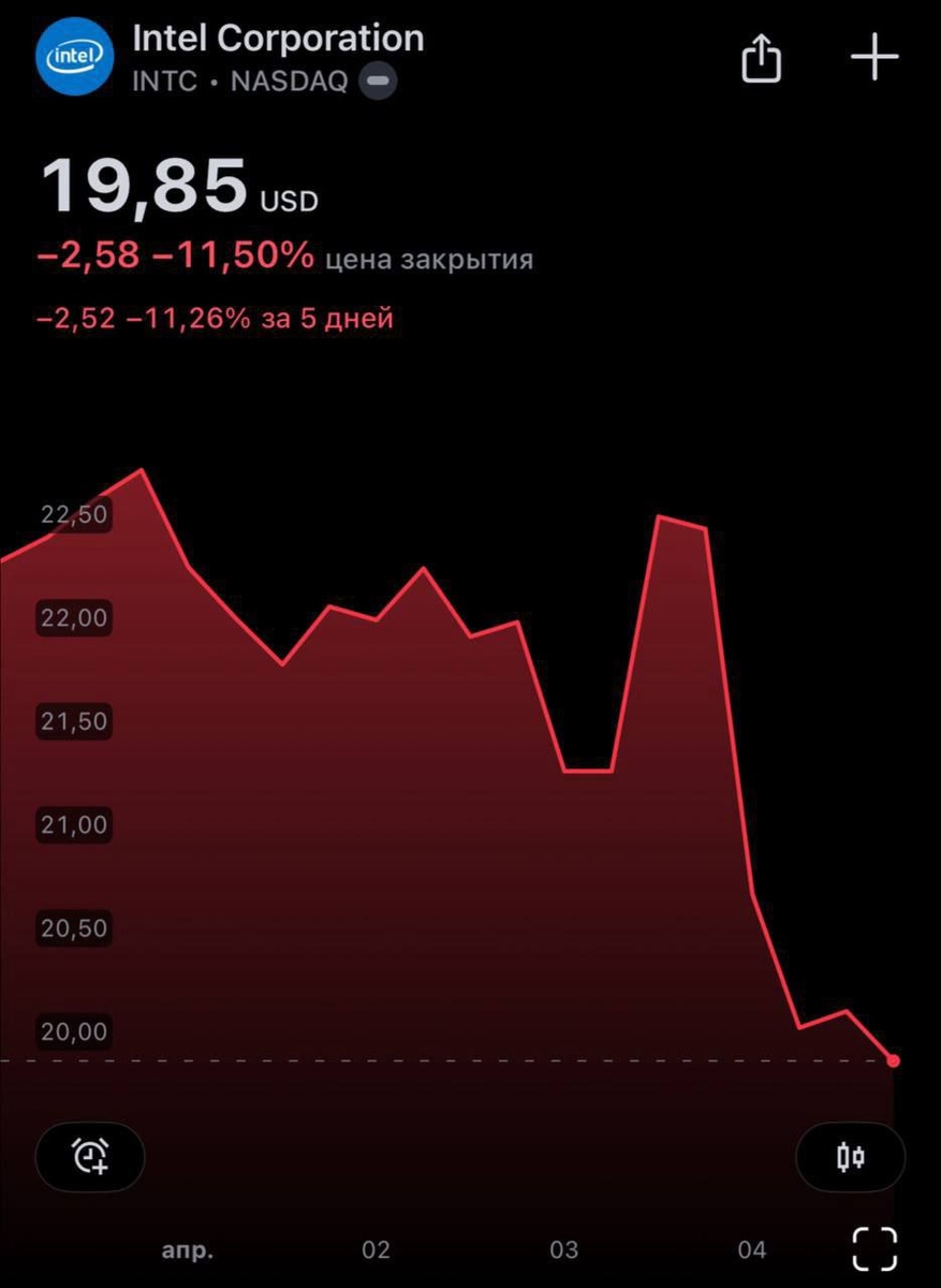 Технологический сектор терпит колоссальные убытки Акции технологических гигантов обвалились после введения взаимных торговых пошлин между США и Китаем. Nvidia потеряла более триллиона долларов, капитализация Apple снизилась на 20%, также существенно пострадали Intel, AMD и другие компании технологического сектора. Обвал рынка технологических акций демонстрирует серьезные риски эскалации торговой войны. Инвесторы опасаются дальнейшего обострения противостояния между США и Китаем.
