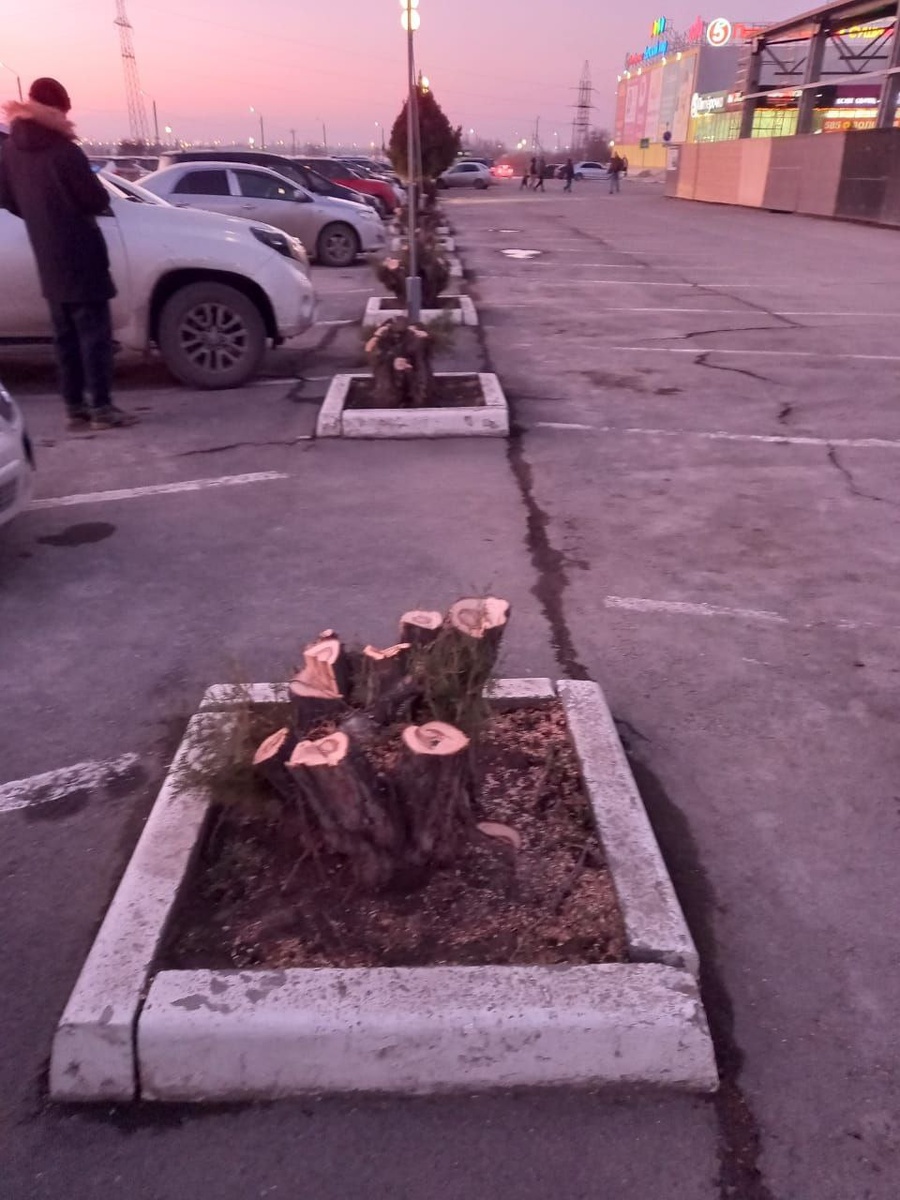В Волгодонске возле ТРЦ «Весенний» вырубили целый ряд туй