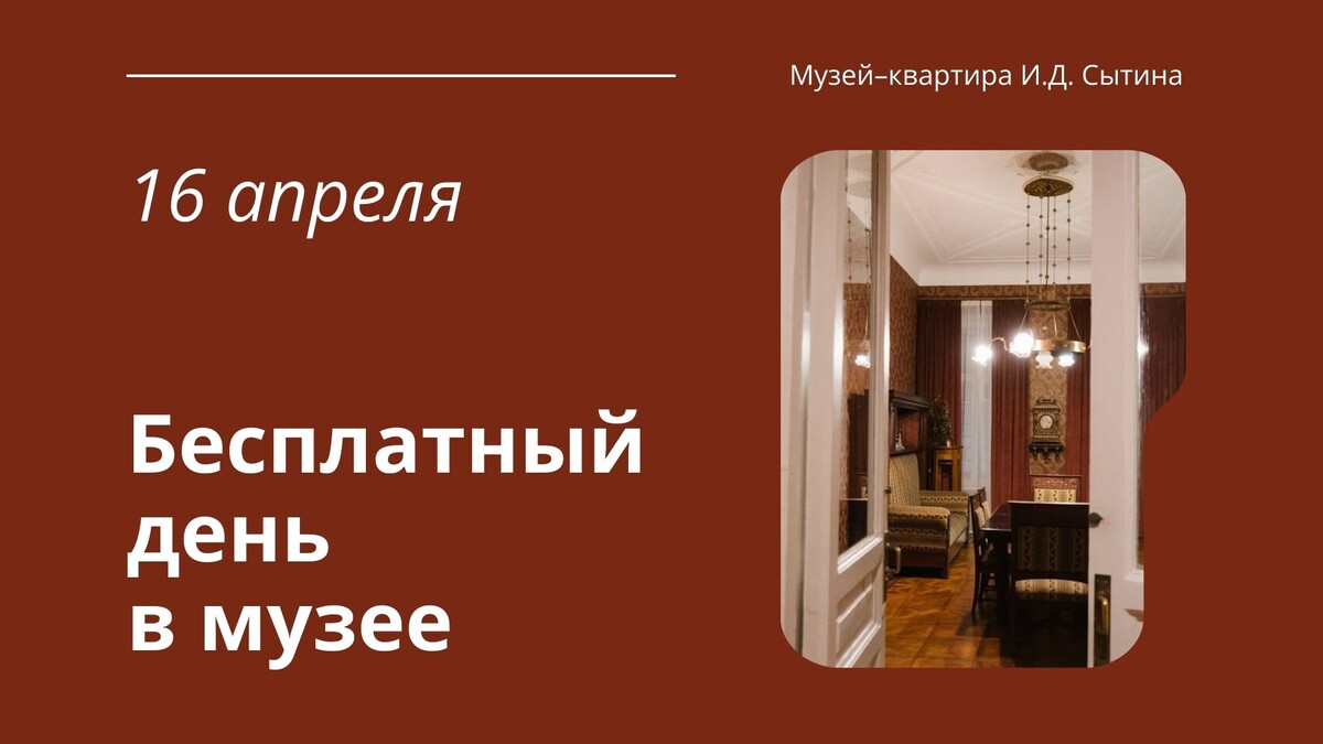 В рамках «Московской музейной недели» 16 апреля вы можете посетить музей-квартиру И.Д. Сытина совершенно бесплатно. Как это сделать? До встречи в музее!