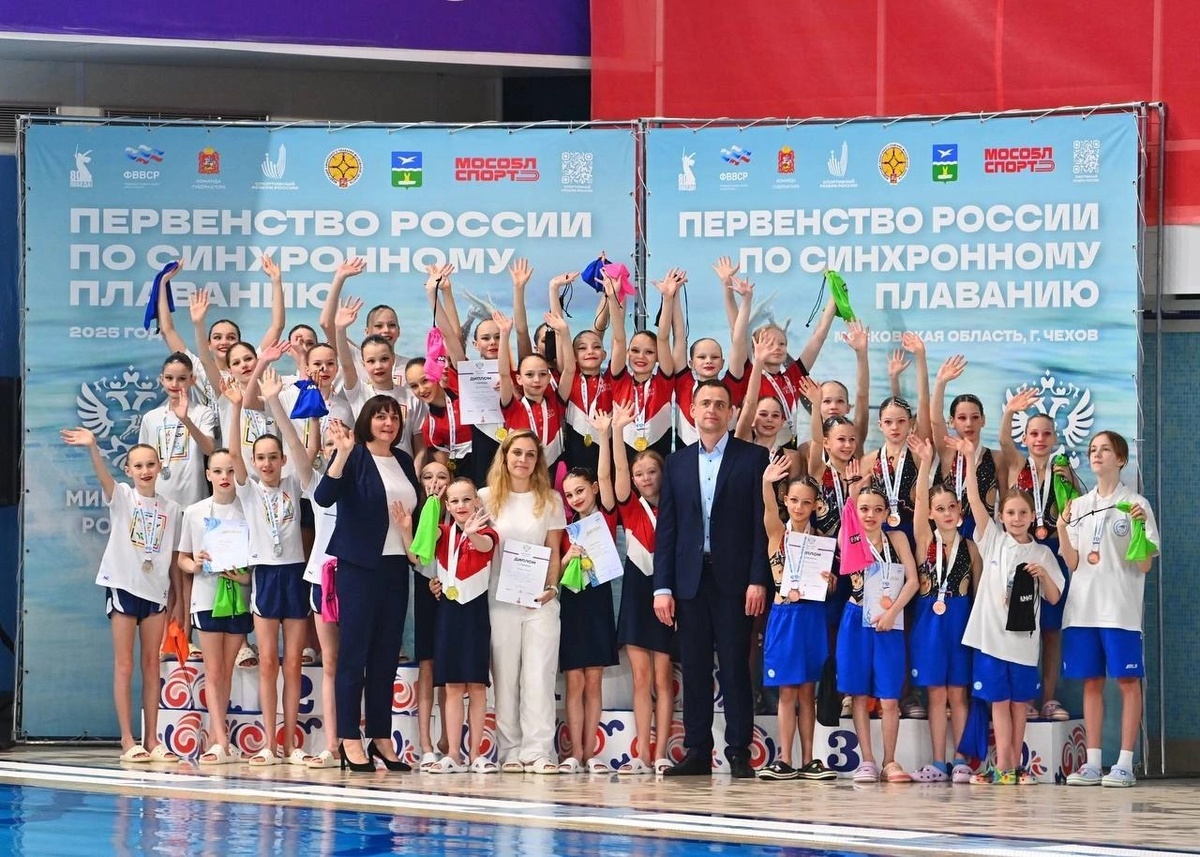 ✨ Наши новости! В г.о. Чехов завершилось первенство России по синхронному плаванию среди спортсменов до 13 лет. Представители Московской области завоевали три медали: золото, серебро и бронзу. Во дворце спорта «Олимпийский» им. Владимира Максимова» более 400 спортсменов из 42 команд, представляющих 24 субъекта Российской Федерации, разыграли медали в шести дисциплинах: фигуры, соло, дуэт, дуэт-смешанный, группа и комби. Спортсмены Московской области завоевали три медали: золотая награда в дисциплине «мужское соло», серебро в дисциплине «дуэт» и бронза в дисциплине «комби». Также подмосковные синхронисты стали третьими среди субъектов РФ в дисциплине «группа» и «дуэт-смешанный». Данный результат позволил подмосковной сборной занять третье место в общекомандном зачете среди субъектов РФ. ✅ Спортивный Чехов https://dzen.ru/id/66f02564335c7475d84fbf87 http://vk.com/chehov_sport http://dzen.ru/chehov_sport