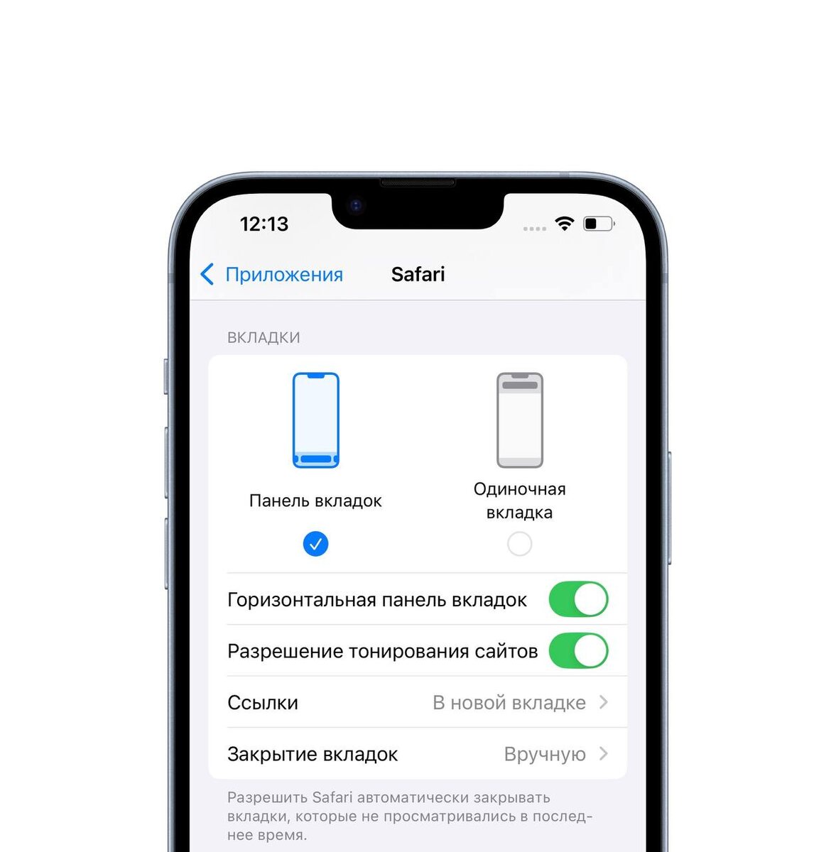 Панель вкладок в Safari может быть сверху или снизу. 👆 Сверху, старый метод отображения. Для тех кто не любит перемены. Если у вас большой экран, удобнее переместить адресную строку вниз👇 Когда панель вкладок внизу, свайпом влево 👈 или вправо 👉 Вы можете перемещаться между открытыми вкладками. Настройки - Safari
