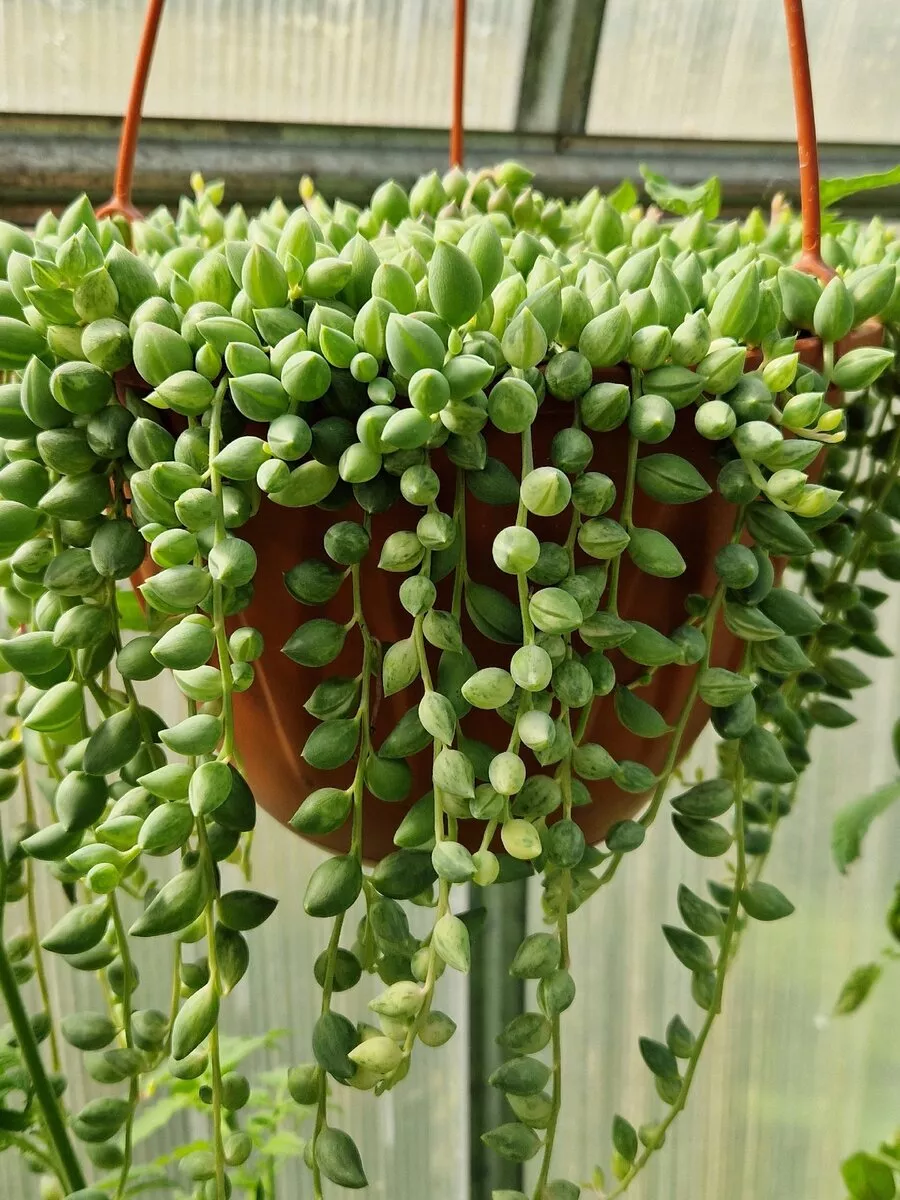 Оригинальное растение – длинные нити с изумрудными бусинками. Это крестовник Роули.Родиной является Намибия. Там встречается в виде почвопокровника и также его можно найти во многих домах. Это суккулент, который изначально рос в жёстких условиях Юго-Восточной Африки, где дожди выпадают несколько раз за сезон. У него есть небольшое узкое «окошко». Оно прозрачное, что способствует пропусканию внутрь солнечного света. Цветение приходится на май-июнь. В это время на растении появляются цветоносы, сами цветы собраны в соцветие как у одуванчика. Они имеют приятный лёгкий запах. Трудность выживания привела к одной очень хорошей способности. Быстрому укоренению побегов при попадании на влажную почву. Их длина в комнатных условиях может достигать 1 метра, а в природных 2. Крестовник при благоприятных условиях очень быстро растет (за год до 20-30 см). Чаще всего его выращивают в качестве ампельника. Уход за крестовником довольно простой. Идеальным освещением является яркий, но рассеянный свет.