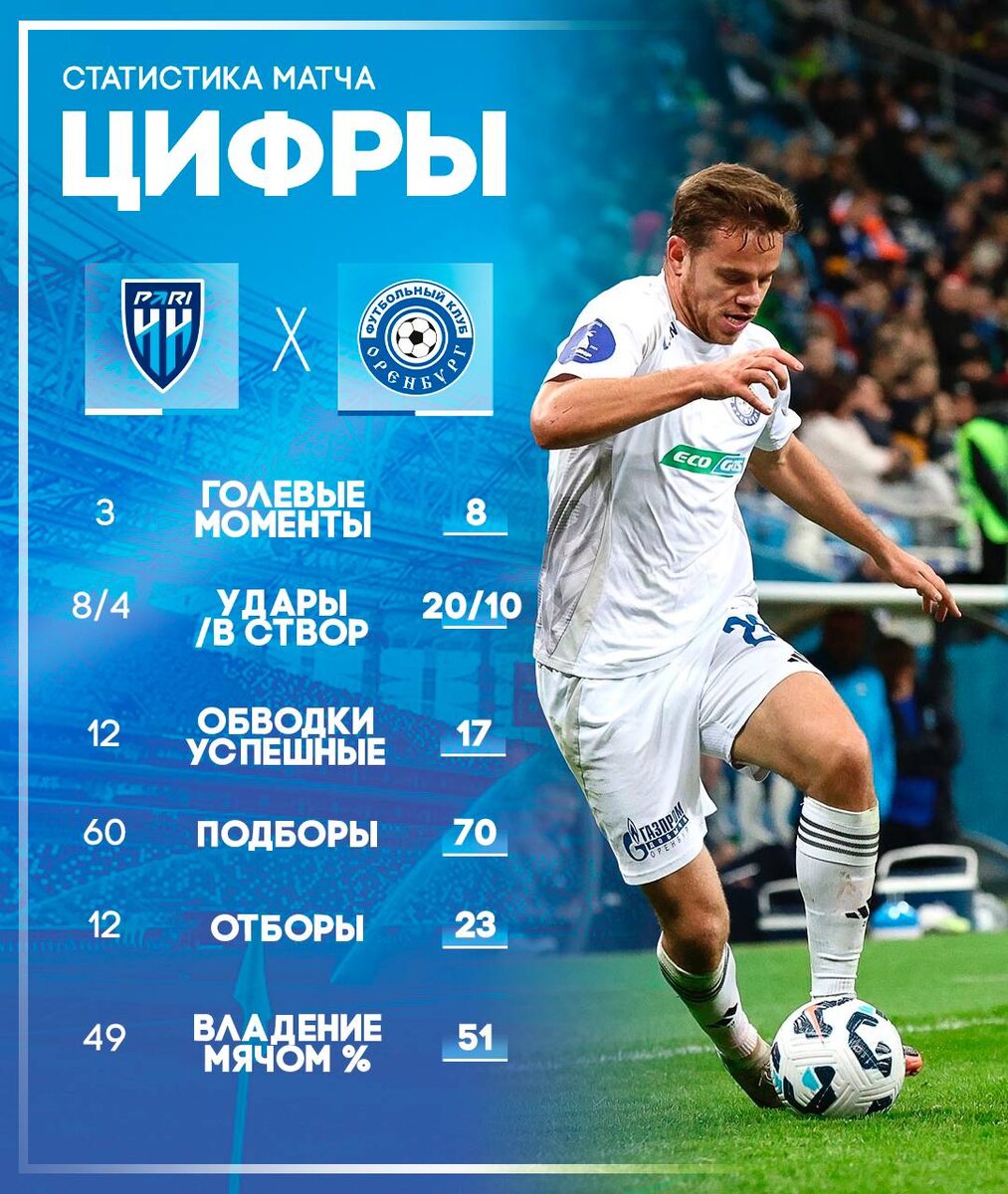 Перебили Нижний Новгород в два раза, а голевых моментов создали на 8 мячей: Собрали для вас интересные цифры прошедшего победного матча 📈 ⚽️⚽️ #ФКОренбург #ПариННОренбург