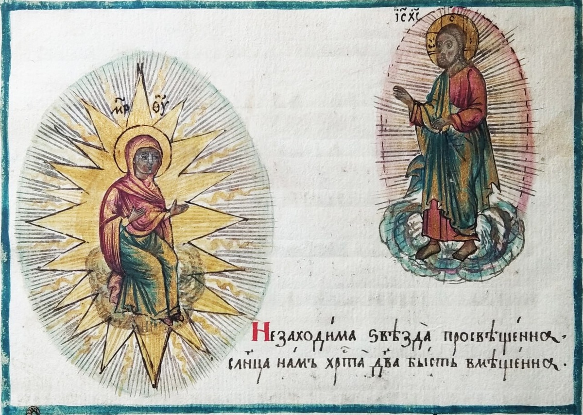 НЕДЕЛЯ КОСМОСА В ЗЕЛО! Космические объекты часто осмысляются иносказательно. Солнце - образ Христа, просвещающего человечество, а незаходимая звезда - Богоматерь. Такой образ приводится в Акафисте Богоматери, миниатюру к которому выполнил Карион Истомин в 1695 году, сопроводив ее стихотворной подписью: Незаходима звезда просвещенна Солнца нам Христа Дева бысть вмещенна.