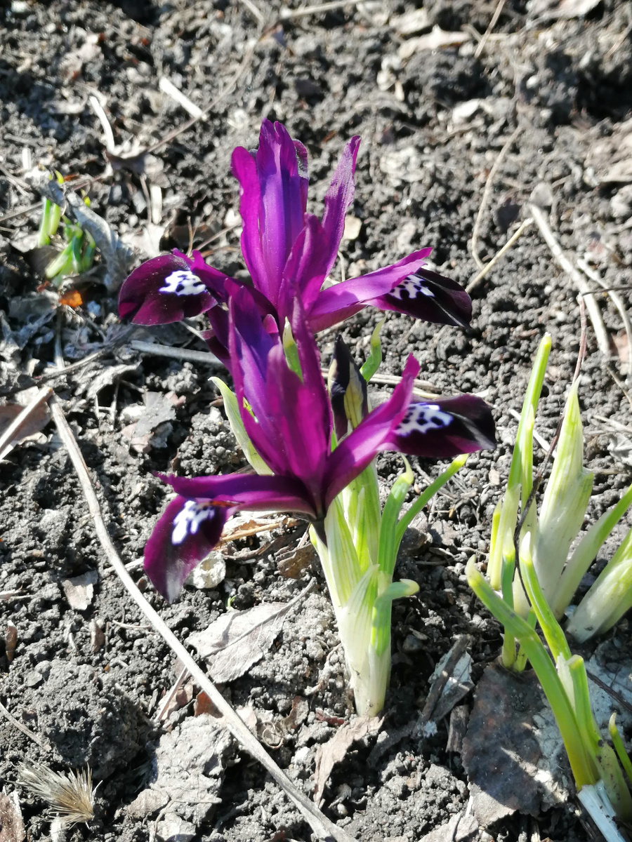 У нас по-настоящему тепло. И вот я уже не знаю, за что хвататься, поскольку все, что до того сидело сиднем буквально выстрелило. Куда бежать в первую очередь, непонятно. Вчера с утра ничего не предвещало, а к обеду расцвели первые иридодиктиумы. Упс, однако, луковичные уже поздно кормить азотом, тут бы с фосфором в последний вагон запрыгнуть... Особенно мне интересно, что ж я такое отдельно посадила. Это явно иридодиктиумы, а вот какие... Не полезу в записи, пусть будет интрига. Помимо печалей есть и радости - похоже, нашлись Ван Эйки. А все потому, что я к ним подсадила крокосмию и решила ее укрыть заодно с розами. Насколько жива она, не знаю, а тюльпаны благополучно схоронились под укрытием и их не съели. Хотя рядом все выжрано в ноль. А вот это, судя по всему, таки Пуриссима. Именно эти тюльпаны я сажала "кучками" по пять. Ну хоть что-то осталось. Скрестила пальцы, жду. Как ни странно, начали разрастаться крокусы, которые я покупала за копейки в Фикспрайсе. Правда, одну курт