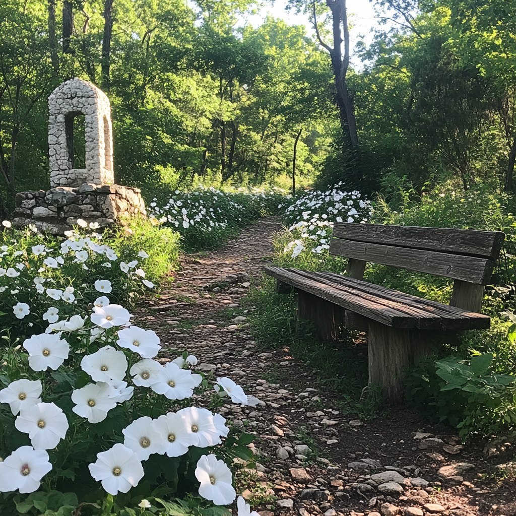 Создано на основе запроса: a small holy pilgrimage site with flowers, bright, white, beautiful