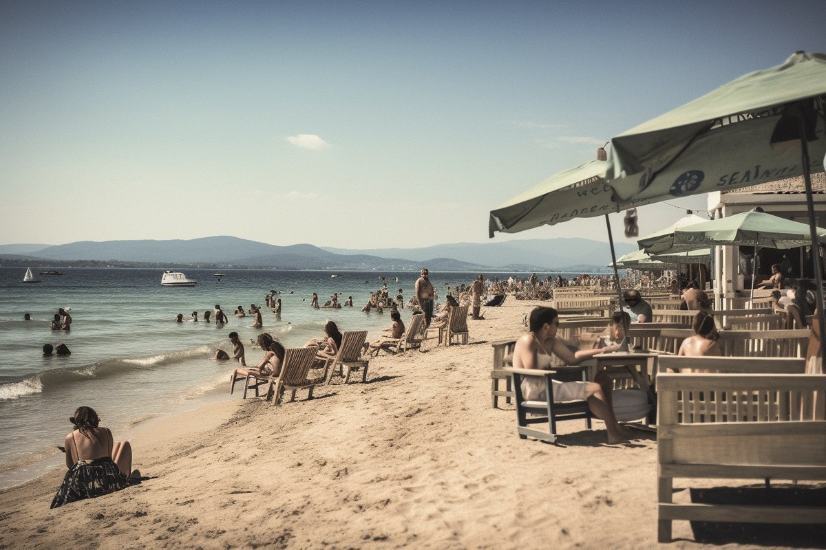 Создано на основе запроса: A real beach scene from Kavos, Corfu, Greece. Groups of young adults sit on sunbeds or drink cocktails at beach bars, with light music playing in the background. The beach is sandy, the Ionian Sea is calm, and paddleboards float nearby. The image is candid, with no stylization or overediting. --- Автоперевод: Настоящая пляжная сцена от Кавоса, Корфу, Греция. Неплохо выглядит? 🤔 https://dzen.ru/id/65c0c65c86e4f837c27b24d7 #ИИ #AI #нейросеть #midjourney #art