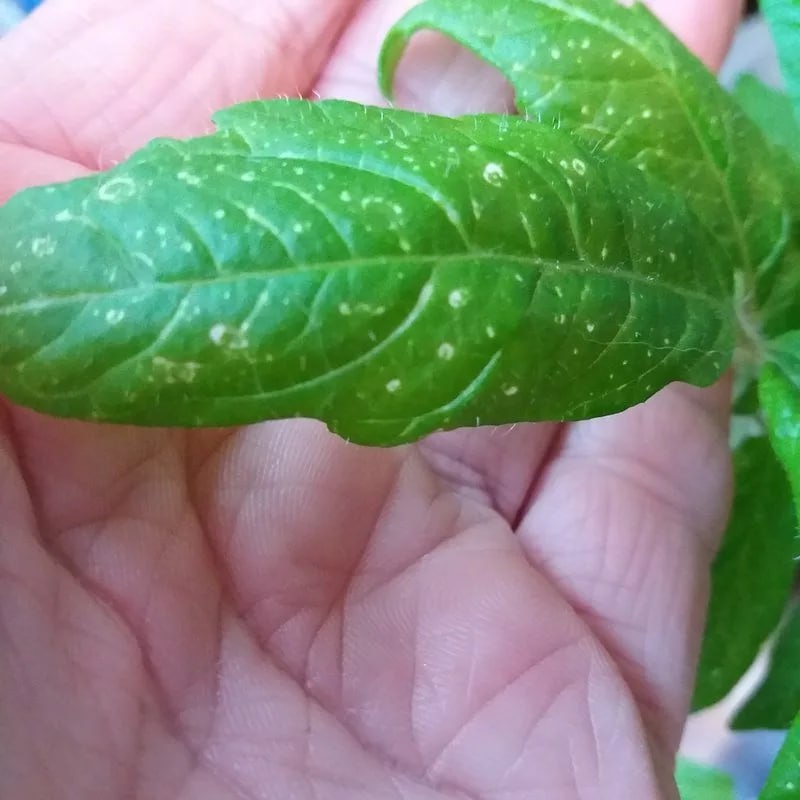 🌱 Пятна на листьях рассады: что это и как лечить Пятна на листьях рассады могут говорить о вредителях, ожогах, избытке влаги, дефицитах или даже вирусах. Важно правильно определить причину. Мелкие вдавленные пятна, хаотично расположенные, часто на семядолях — вредители. Обработка: Фитоверм по листу + Актара под корень (1 г на 10 л) или Каррагер. Белые плоские пятна сверху на листьях — ожог от ламп. Уберите рассаду дальше от света, поливайте только под корень. Пузырьки/волдыри снизу листа — отёк (эдема). Сократите полив и уменьшите освещение. Мраморные бледные пятна снизу старых листьев — нехватка магния. Полив сульфатом магния (1 г на 1 л) или магнезией (10 мл на 1 л). Плоские пятна + деформация листа — вирус. Такие растения не лечатся, их нужно удалить.