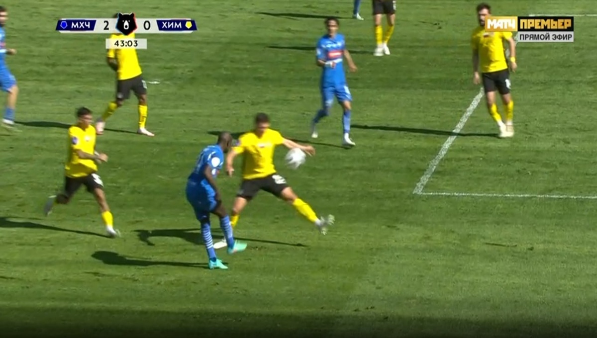 Динамо Мх-Химки ✅ 43 мин. Правильное решение принимает Чебан и назначает 11-м удар в ворота команды Химки. Рука игрока отставлена в сторону и увеличивает площадь тела. Правильное решение: 11-м удар