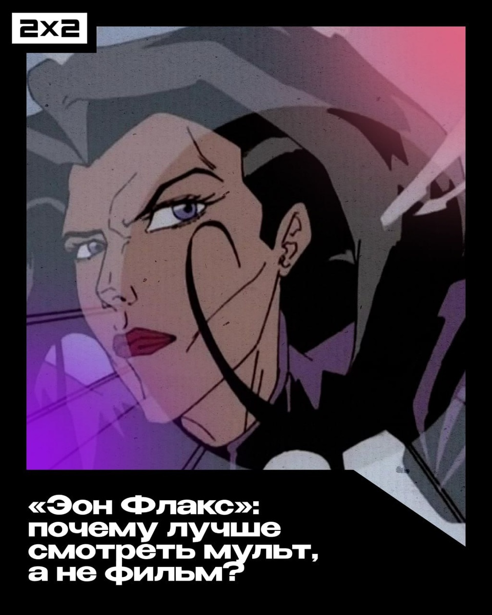 Чем мультсериал «Эон Флакс» отличается от фильма-адаптации и почему выигрывает на её фоне? Рассказываем в карточках. Смотрите культовую анимацию в 23:05 в эфире 2х2
