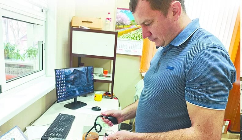 - Так как у вас прибор механический, первым делом мы проверяем его на герметичность. Накачиваем его и видим, что прибор «бежит» при закрытой груше. Это значит, что трубки высохли, а камеру надо менять, - поясняет Вадим Ванюшин.