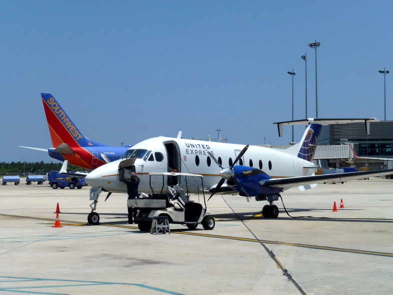 Самолет, на котором мы летели Beechcraft 1900, на 19 пассажирских мест. Перелет длился 50 минут, комфортный, турбулентности не было. Да, каждый багаж стоит 25 долл, и должен быть не более 23 кг., и по 1 на человека.