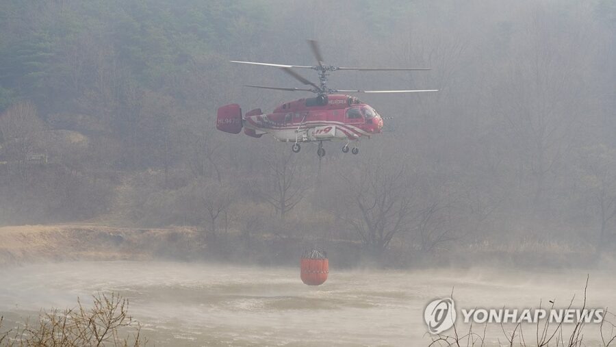 В Республике Корея вертолет потерпел крушение во время борьбы с пожаром
