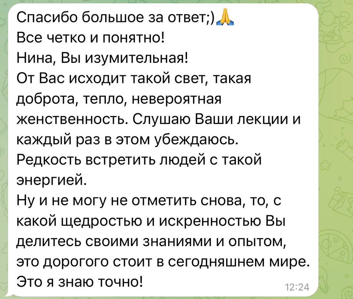 Как же приятно получать такие отзывы от слушателей моих курсов