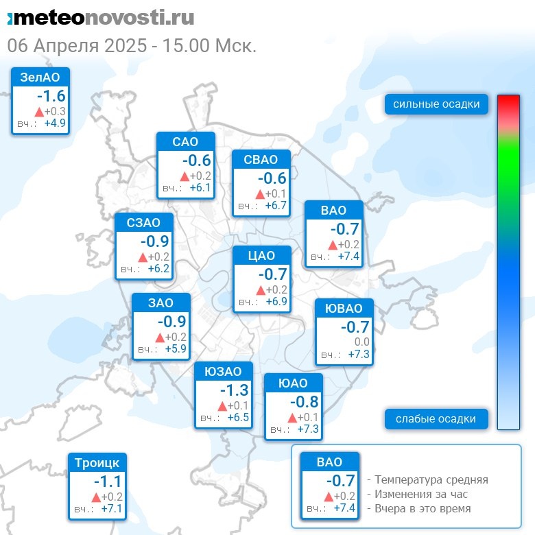В 15:00 в Москве было от -1.9°C до 0°C, средняя температура -0.8°C #погода #Москва #весна #температура #6апреля #воскресенье Перейти на сайт Прогноз погоды на 14 дней