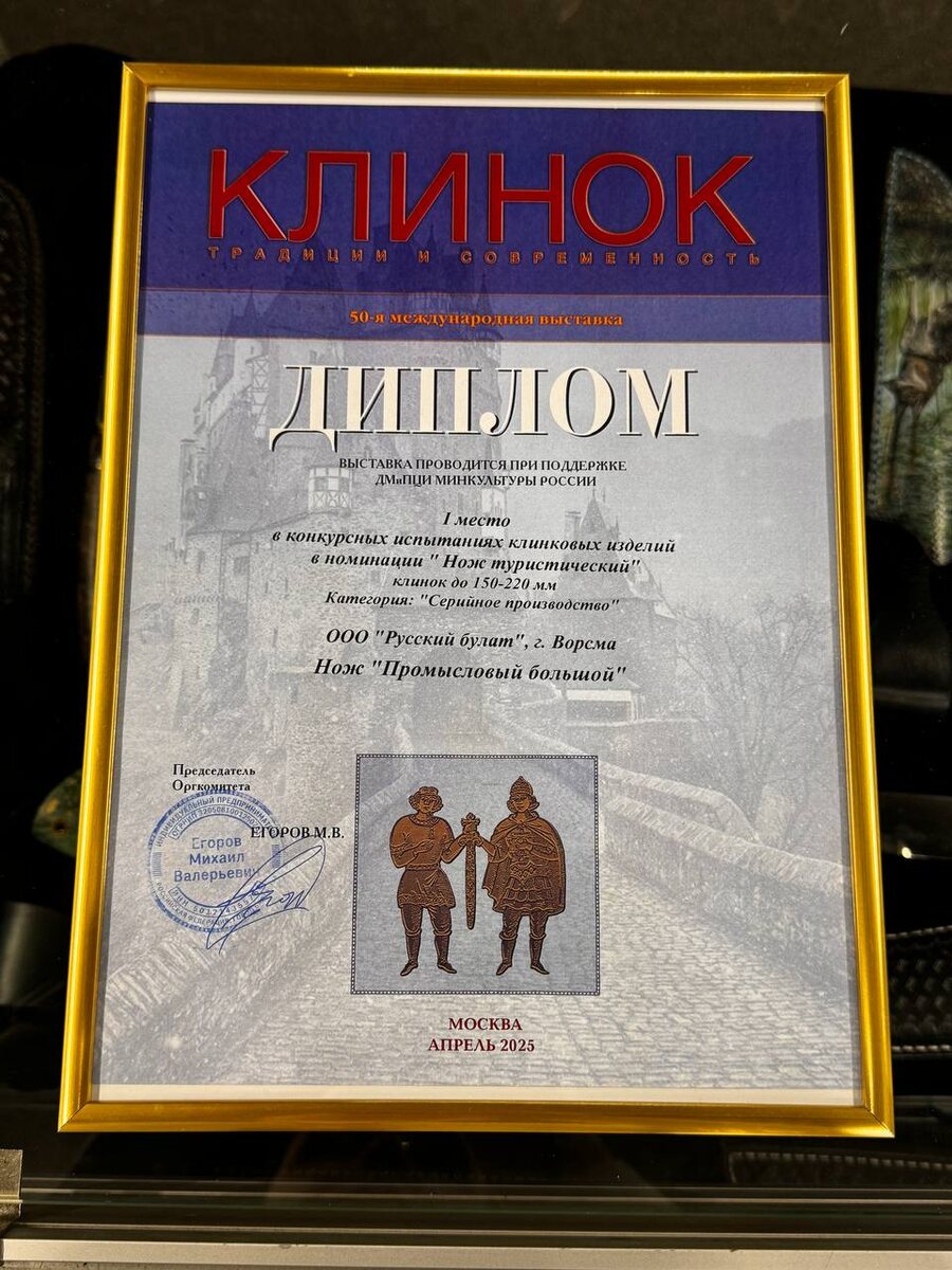 По итогам 50-й юбилейной выставки Клинок компания Русский Булат получила 5 первых мест. В конкурсе по резу выставляли 3 ножа из стали 9ХС ручной ковки в разные номинации. В каждой из номинаций 9ХС заняла первые места!