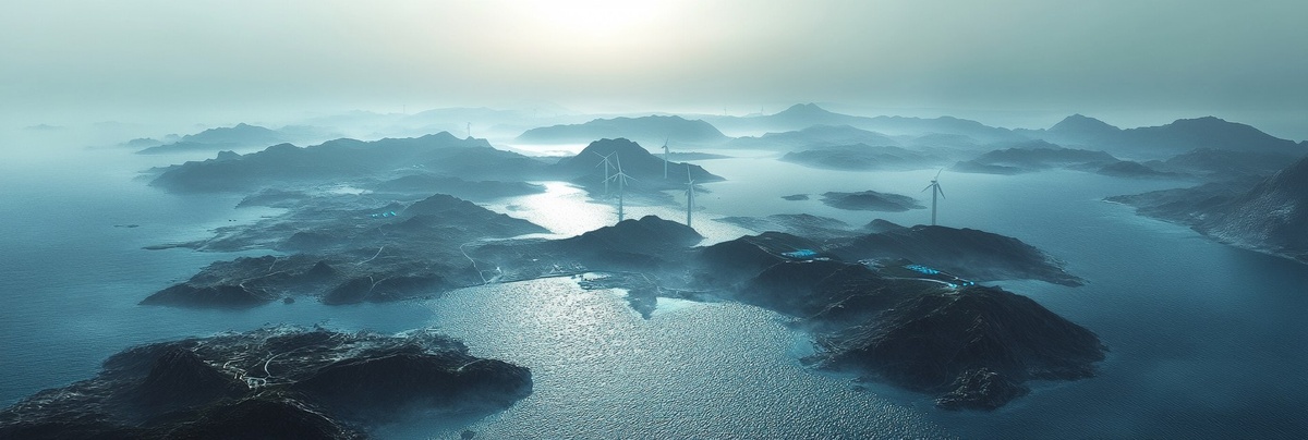 Создано на основе запроса: A hyperrealistic aerial view of Chodo Island (초지도), South Korea, in the year 2045. Gigantic offshore wind turbines installed around the coastline, sleek white with blue LED indicators. . Early morning fog drifts over the sea, muted sunlight gleams off the blades. Created Using: drone-shot simulation, high-res terrain modeling, photorealistic ocean physics, modern Korean energy design, subtle fog rendering, HDR sunrise tone, 3D environment accuracy, cinematic realism --- Автоперевод: Гиперреалистический вид на остров Чодо (초지도), Южная Корея, в 2045 году. Как тебе этот вариант? 🤔 https://dzen.ru/id/65c0c65c86e4f837c27b24d7 #ИИ #AI #нейросеть #midjourney #art