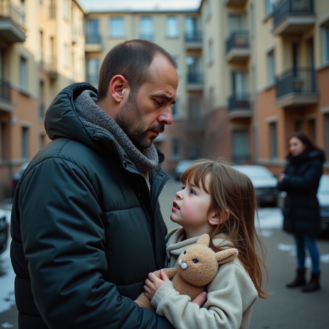Сердце Серёжи сжалось. Он не мог отвести взгляд. Маша подняла глаза — и их взгляды встретились. В ней вспыхнула надежда, уменьшенная сомнениями. Она не закричала «папа» — будто боялась ошибиться.