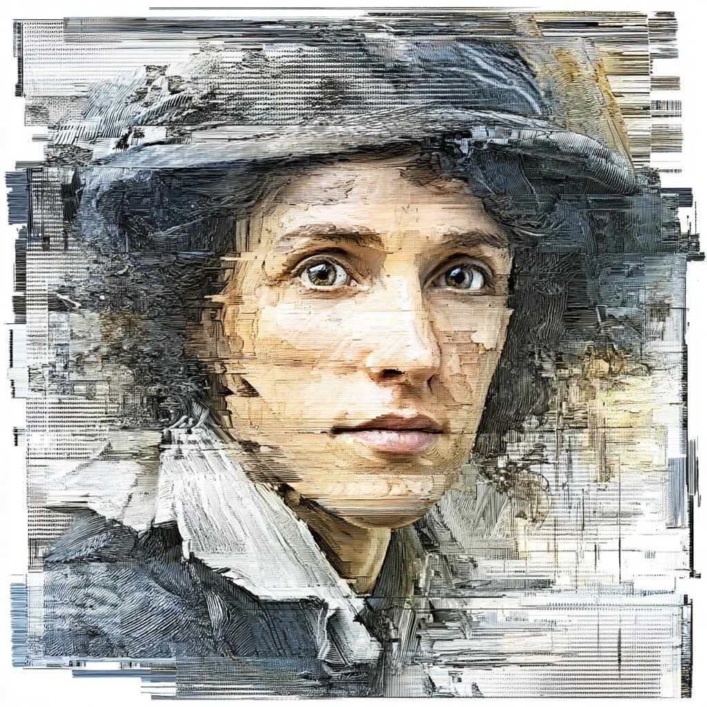 Создано на основе запроса: A classic Rembrandt portrait of a woman in 17th-century attire, but her face subtly fragments with chromatic glitch trails, eyes flickering like analog TV static, dark chiaroscuro lighting clashes with digital error artifacts, oil painting realism layered with VHS corruption, Baroque reverence meets digital decay --- Автоперевод: Классический портрет Рембрандта женщины в наряде 17-го века, но ее лицо тонко фрагменты с хроматическими сцеплениями с глюками, глазами, как аналоговые телевизионные статические, темные конфликты освещения с темным Chiaroscuro с цифровым распадом, разрывами маслом, слоившим Как тебе такая иллюстрация? 🤔 https://dzen.ru/id/65c0c65c86e4f837c27b24d7 #ИИ #AI #нейросеть #midjourney #art
