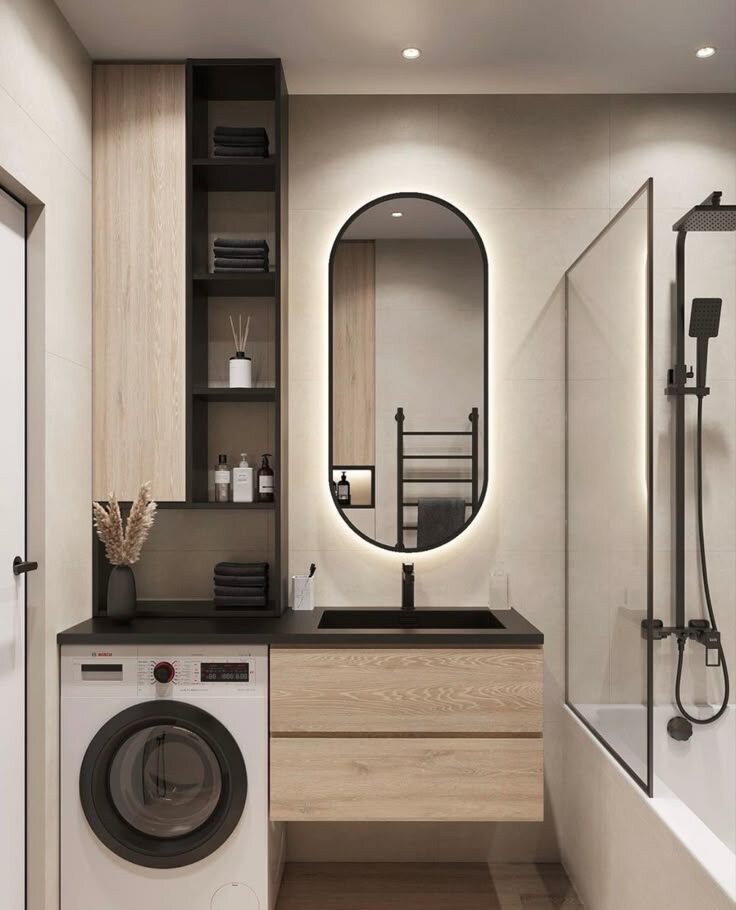 Обсуждаем, как выбрать и разместить мебель и сантехнику в маленьком санузле площадью всего 4 квадратных метра, а также какой стиль будет оптимальным. Душ вместо ванны При выборе между душем и ванной для компактных санузлов нет универсального ответа. Все зависит от обстоятельств, возраста, здоровья жильцов и их привычек. Душевая кабина занимает гораздо меньше места, что делает ее более предпочтительным вариантом. В ванной 2 на 2 метра стандартная ванна может занять почти половину пространства, что затрудняет передвижение и ограничивает возможность установки необходимой сантехники и систем хранения. Компактная раковина В маленькой ванной каждая деталь имеет значение, поэтому стоит рассмотреть возможность заменить большую раковину на компактные модели. Они могут быть удобными: выбирайте умывальник с эргономичной формой и достаточной глубиной, чтобы избежать брызг. Подвесная раковина освободит пространство под ногами, а модели глубиной 40-45 см можно разместить сбоку от двери. Подвесной ун