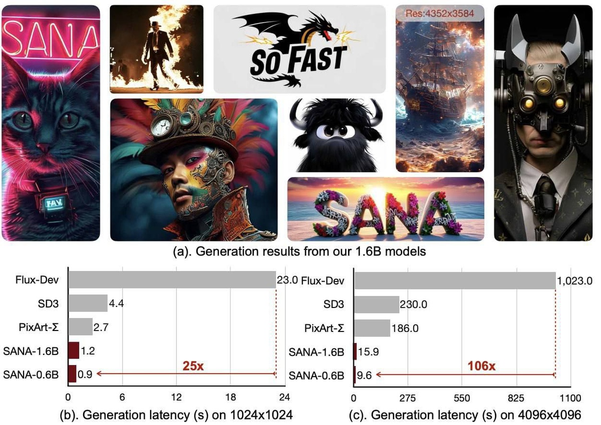 Sana – фреймворк для преобразования текста в изображение, который может эффективно генерировать изображения с разрешением до 4096 × 4096