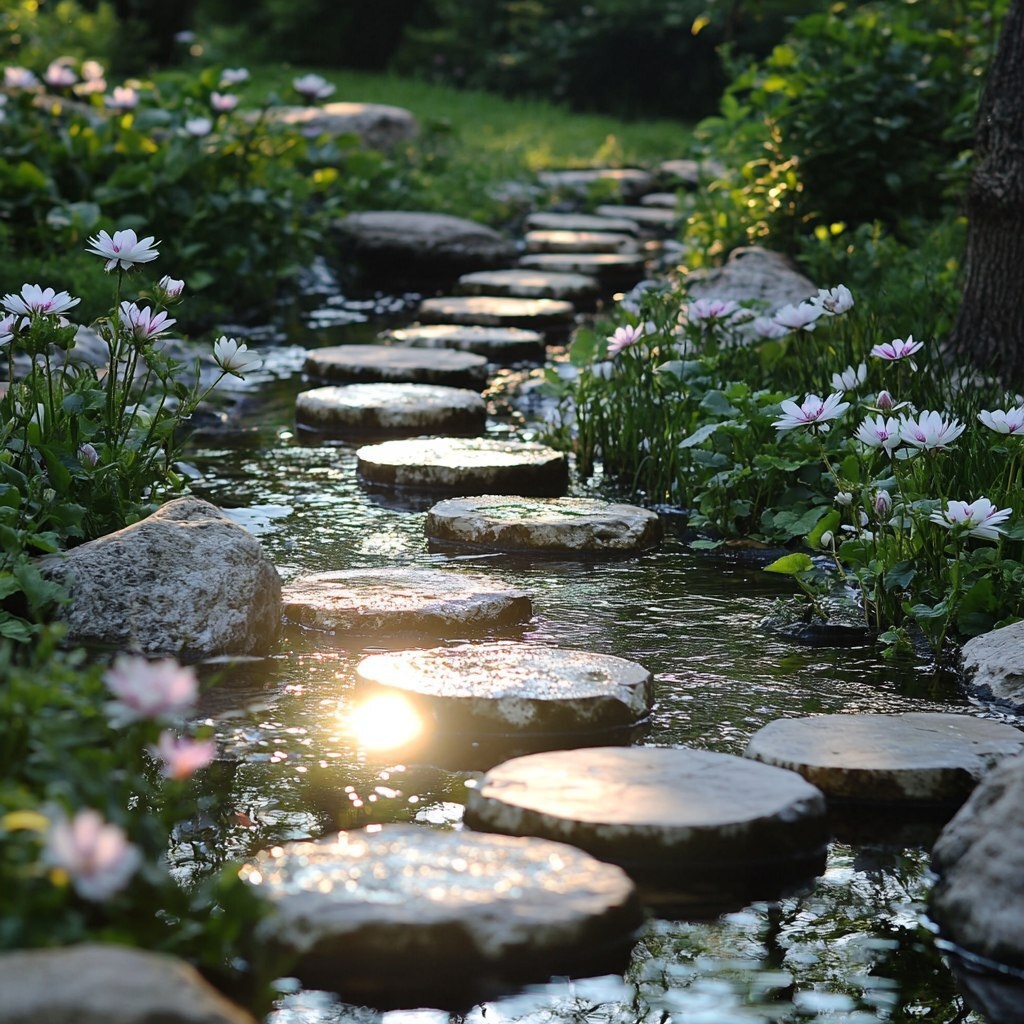 Создано на основе запроса: relaxing pond with flowers, white, heavenly, photo
