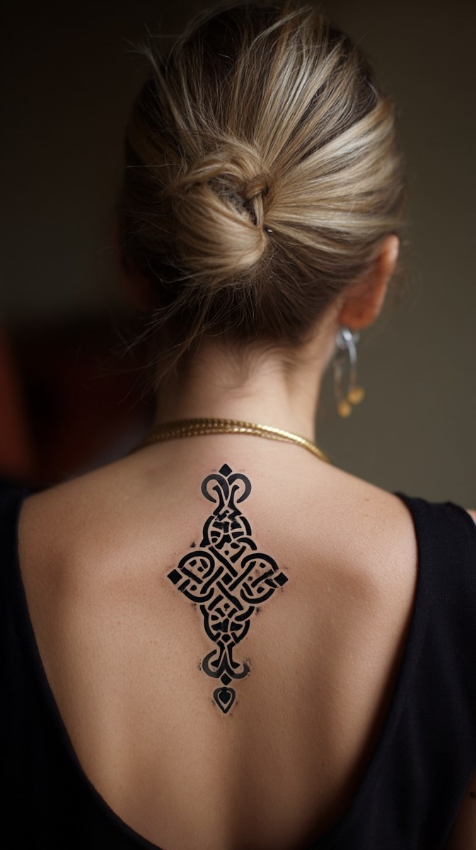Создано на основе запроса: a celtic knot tattoo, in a back's lady