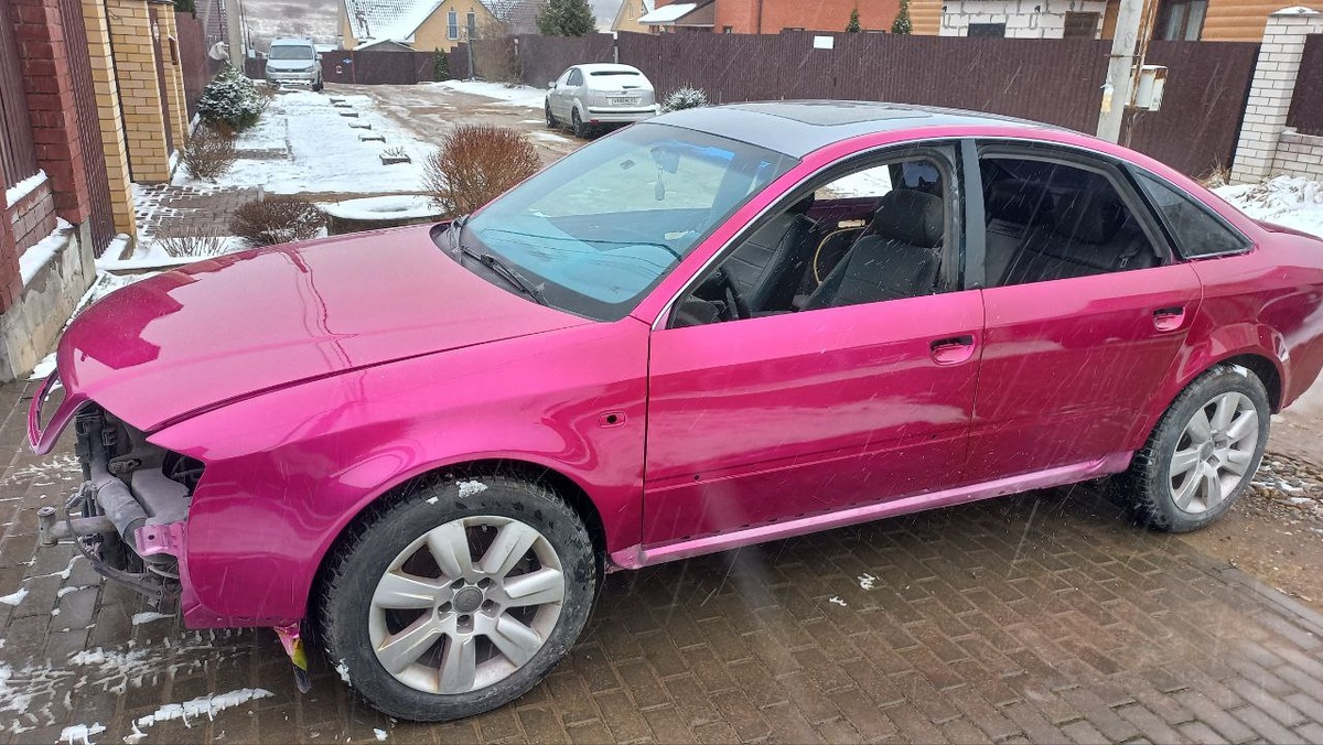 Ходим с клиенткой вокруг машины и радуемся. Цвет достаточно равномерный и глубокий, похож на красный, но при попадании света отливает розовым - ради чего и была выбрана кэнди-краска.