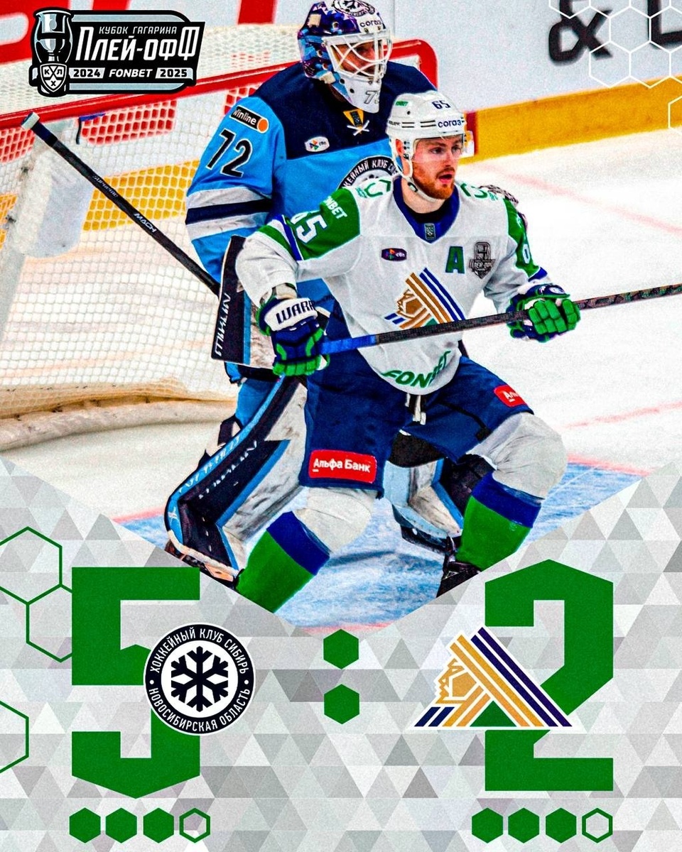Уфимский «Салават Юлаев» проиграл «Сибири» со счетом 2:5 в шестом матче плей-офф в Новосибирске. Общий счет в серии – 3:3. Cчет в матче открыл «Салават Юлаев». На 16-й минуте с передачи Александра Хмелевского Шелдон Ремпал красиво обыграл вратаря «Сибири» Дениса Костина — 0:1. В первом отрезке уфимцы получили 5 возможностей для реализации большинства, но не смогли воспользоваться ни одной из них. В середине второго периода нападающий «Сибири» Кирилл Рассказов получил травму и покинул лед на носилках. Форвард получил повреждение в результате столкновения с защитником «Салавата Юлаева» Григорием Паниным. «Сибиряки» также потеряли нападающего Алексея Яковлева, который после попадания шайбы в голову не смог доиграть игру. Но хозяева не пали духом и на 25-й минуте сравняли счет. Голом отличился Энди Андреофф — 1:1. Спустя 30 секунд Иван Климович точным броском в дальний угол удвоил преимущество «Сибири» — 2:1. На вторую шайбу хозяев «юлаевцы» быстро ответили, счет сравнял Петр Хохряков с пе