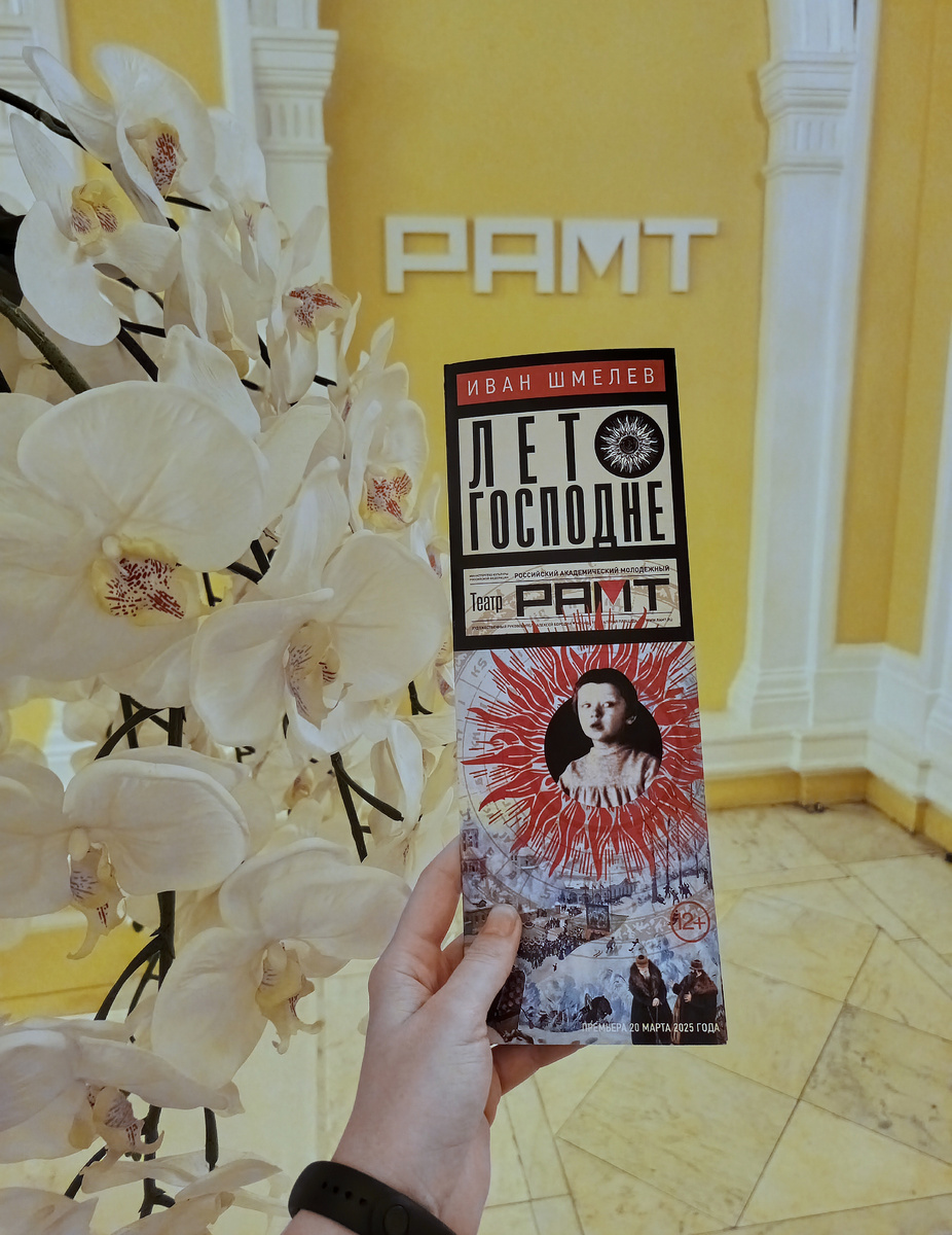 На Основной сцене Российского академического Молодежного театра вышел спектакль по знаменитому роману Ивана Шмелева в постановке Марины Брусникиной. Ностальгия по беззаботному детству и ушедшей дореволюционной России. Роман автобиографический, написан в эмиграции. Уклад русской купеческой семьи в нем показан через церковный год, начиная с Великого поста. «Лето Господне» состоит из трёх частей: «Праздники», «Радости», «Скорби». В спектакле оставили две контрастные истории: первый акт – посвящен «Праздникам», а второй – «Скорбям». После антракта настроение резко меняется на тревожное, а затем и вовсе трагическое. Автора исполнил Александр Девятьяров, как рассказчика, слушать его можно бесконечно. Очень красивый язык, эмоциональное описание, великолепное попадание в роль. Весь спектакль не могла отделаться от мысли, почему этот актёр мне так знаком, вроде в других постановках в РАМТе его не встречала. Оказалось, что видела его в спектакле «Наташа» в театре Наций, яркий артист, для меня