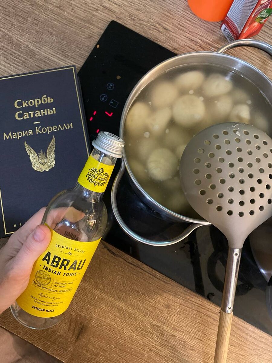 Можно подумать, что я в депрессии. Можно, но не нужно) У меня не депрессия, а дети энд Ко. И мне все надо успеть за 60 секунд. Ну или около типа того. Так как за вышеупомянутое время ужин я приготовить не успела, то варю пельмени. Читаю книгу и наслаждаюсь тоником. Поэтому это иллюстрация не пошатнувшейся психики, а четко расставленных приоритетов. Без жаркого, но с новой книгой. И кто мне что сделает 😅