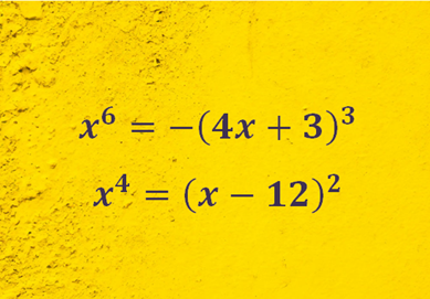 Рассуждаем так: х^6 всегда больше или равен нулю, значит выражение –(4х+3)^3 также неотрицательно, т.е. больше или равно нулю. Это означает, (4x+3^3) не положительно, т.е. меньше или равно нулю. Запишем это на языке математики: Извлечем кубический корень из левой и правой частей: Знак «минус» поставлен по той причине, что выражение (4х+3) отрицательно (не положительно), а х^2 всегда положительно (неотрицательно). Поэтому, чтобы их уравнять, мы с помощью знака минус перед скобками изменили знак выражение (4х+3) на положительный. Теперь решим простое квадратное уравнение Обычно этому не придают значения, но корни уравнение желательно записывать в порядке возрастания. Данное уравнение будем решать совершенно другим способом, и используем для этого формулу разности квадратов Перенесем все в левую часть и представим х^4 как квадрат числа х^2: Решение уравнений такого вида подробно разобрано здесь.