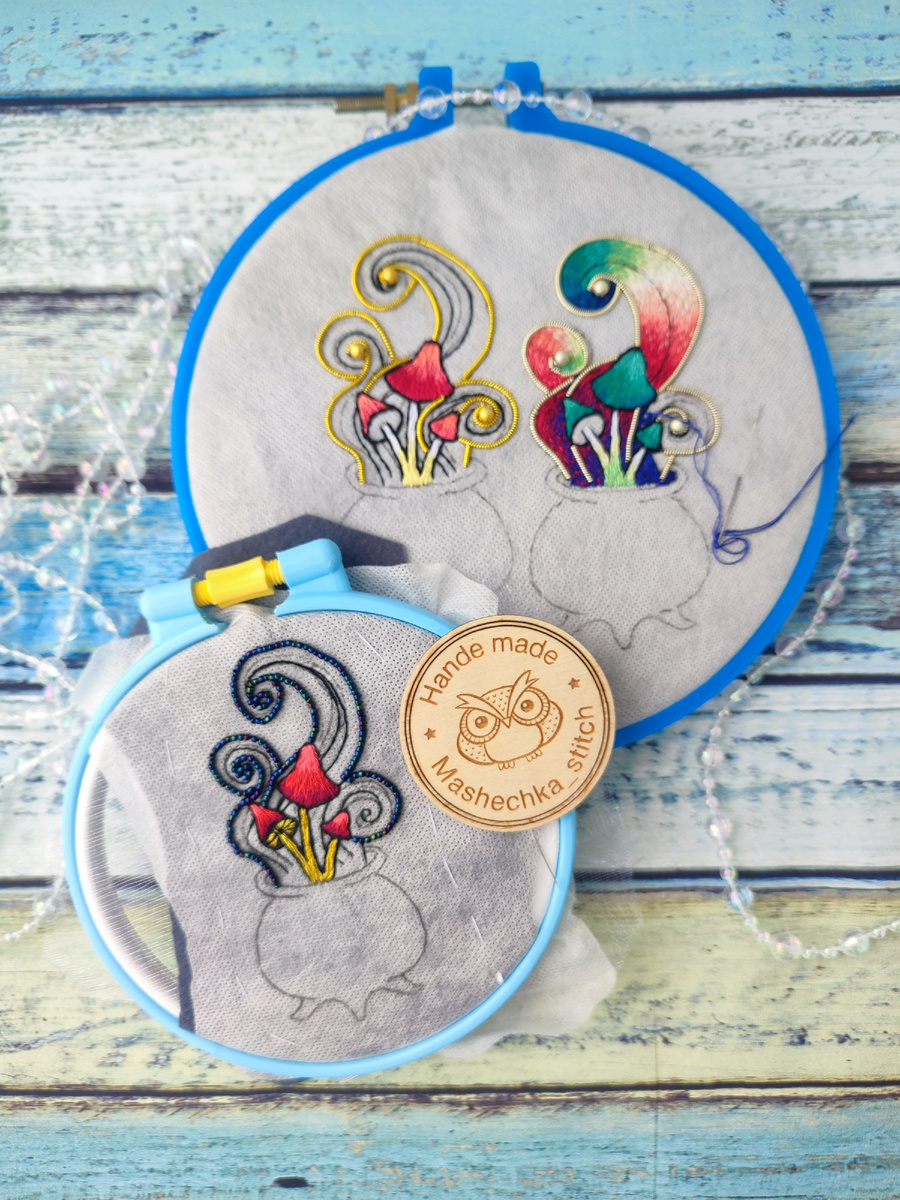 Обычно не люблю делиться процессами работ, потому что по ним сложно судить о конечном результате. К тому же, это обязывает показать итог, даже, если эксперимент прошел неудачно. Сейчас участвую в марафоне у Соболевой, по МК вышиваю котелок. Процесс идет не просто. У автора мне понравились фото работ, смотрится хорошо, но у меня какая-то фигня по началу получалась. Композиция самого рисунка сильно смущала, все какое-то тесное, все элементы мешают друг другу. Получалось, что я не столько вышиваю, сколько думаю, как бы адаптировать и исправить, чтобы стало норм. Возможно, размер котелка нужно было делать больше. Но предлагалось 3 размера и я взяла не самый маленький. Весь МК разделен на 3 части. В каждом этапе сначала вышивается нитью, затем изделие украшается бисером и пайетками. Я решила, что все украшательства сделаю в конце, т к в итоге заметно отступила от МК и сейчас непонятно, что будет смотреться хорошо, а что плохо. Вот на такой стадии я пока что. По срокам, естественно, отстаю.