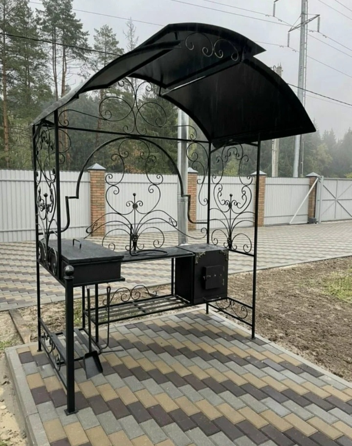 Кованый мангал "Элит-б" с печью и дымоходом
