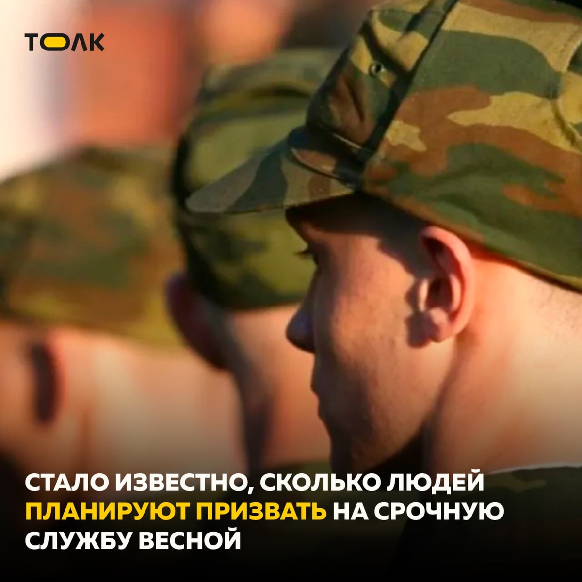 🫡 Весенний призыв в России стал самым масштабным за 14 лет. В период весеннего призыва на срочную службу в России, который продлится с 1 апреля по 15 июля, планируется призвать 160 тыс. человек, сообщает РБК. «1 апреля в России начался весенний призыв на срочную службу. До 15 июля в армию должны забрать 160 тыс. человек, что является рекордом с осени 2011 года», — говорится в сообщении. В публикации говорится, что срочная служба в течение 12 месяцев в России начала действовать с 2008 года. И в 2009 году было призвано рекордное количество «срочников» — 305,6 тыс. человек. После этого число призывников начало планомерно снижаться. В 2011 году было призвано 218,7 тыс. человек. Следующие 27 призывов количество призванный колебалось от 120 тыс. до 150 тыс. человек. 👍 ТОЛК