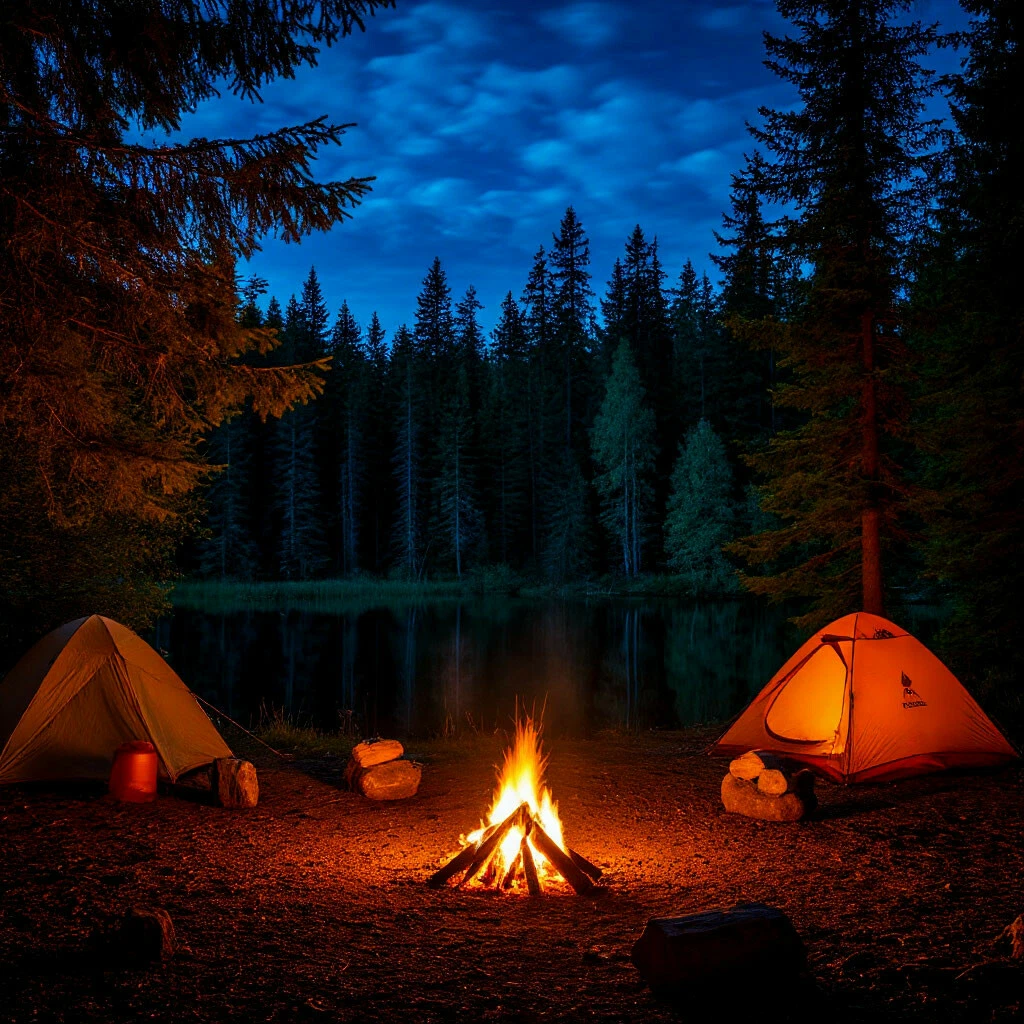 Солнце, словно золотая монета, скатывалось за горизонт, окрашивая верхушки сосен в багряные тона. Легкий ветерок доносил аромат хвои и прелой листвы, смешиваясь с запахом дыма от костра, который весело потрескивал, устремив языки пламени к звёздному небу, а вокруг него расположилась компания из восьми человек, образовав тесный круг. Это была компания студентов, решивших сбежать от городской суеты и окунуться в тишину и спокойствие дикой природы на целую неделю. Лес, озеро, свежий воздух, походная романтика...